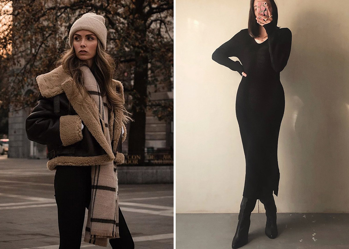 Un morceau phare à avoir dans sa garde-robe cette saison est définitivement la robe de tricot. On aime beaucoup ce modèle avec sa longueur midi que vous pouvez facilement jazzer avec des talons hauts et des bijoux pour une soirée chic. Ou bien, portez-la avec des bottes à plateformes avec un manteau ample pour un look plus décontracté.