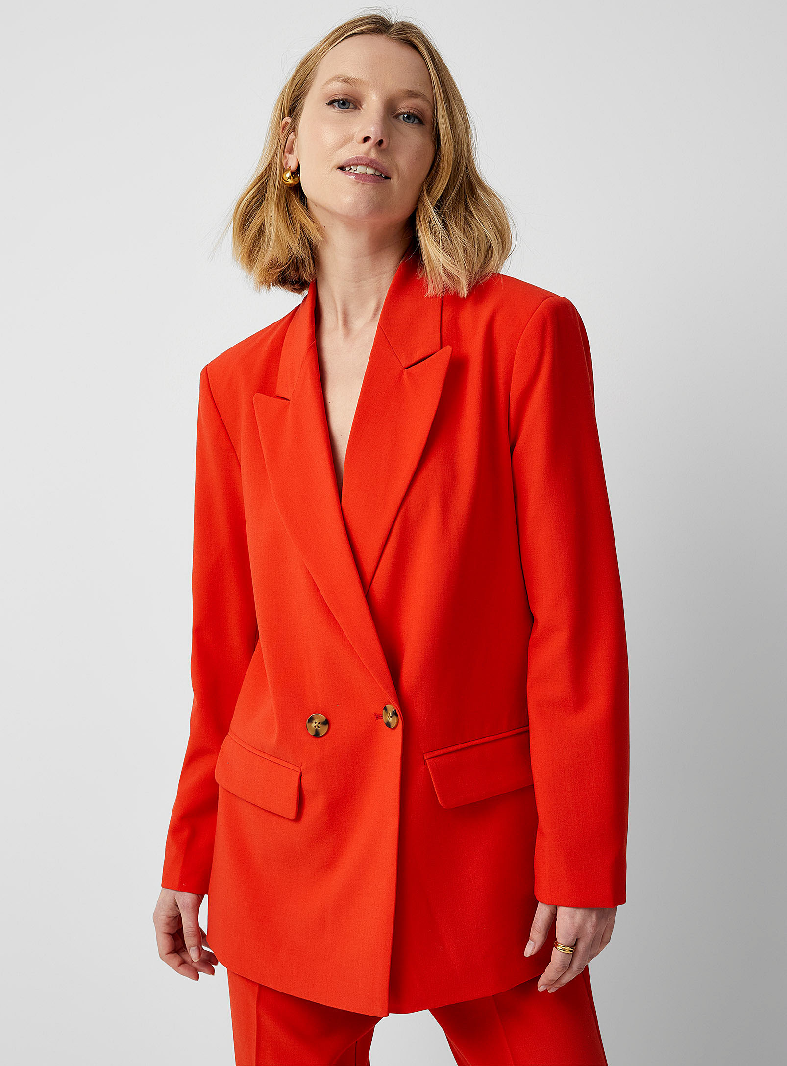 Le veston surdimensionné demeure une valeur sûre en toutes saisons. Au printemps toutefois, on ose la couleur. Cette teinte vitaminée fait du bien au moral. Le pantalon coordonné est aussi disponible pour un tailleur qui égayera les journées au bureau.