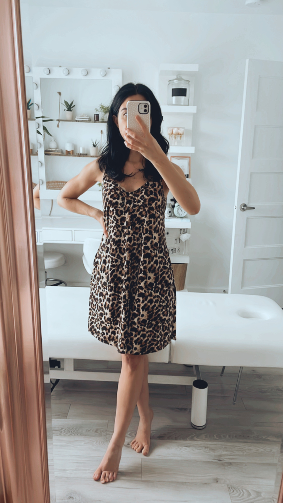 J’ai choisi le modèle à motif léopard, l’un des imprimés classés hot sur Amazon (donc parmi les plus populaires). J’ai tout de suite été séduite par le tissu ultra doux de la robe. Toutefois, en regardant de plus près, quelques coutures manquent de finition. Rien de bien dramatique; à ce prix, on ne s’attend pas à un item parfait.