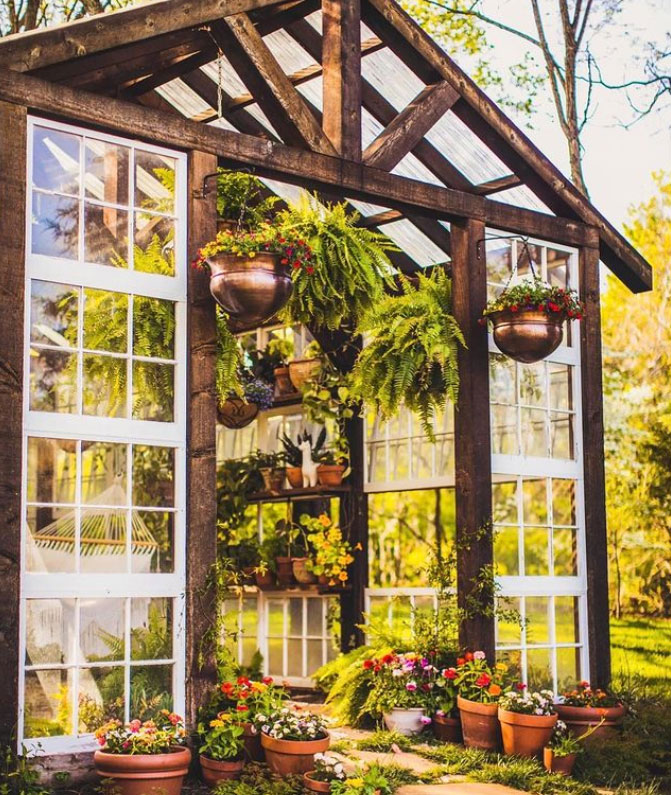 Gros coup de coeur pour cette jolie serre au look si chaleureux! On aime le contraste de couleurs créé entre le cèdre naturel et les fenêtres à carreaux blancs! Ce qui est encore plus impressionnant, c'est que toutes les fenêtres utilisées dans ce projet sont recyclées, ce qui a permis au couple qui l'a construite d'économiser une importante somme d'argent! Un projet d'envergure qui confère certainement une ambiance féérique à la cour arrière!