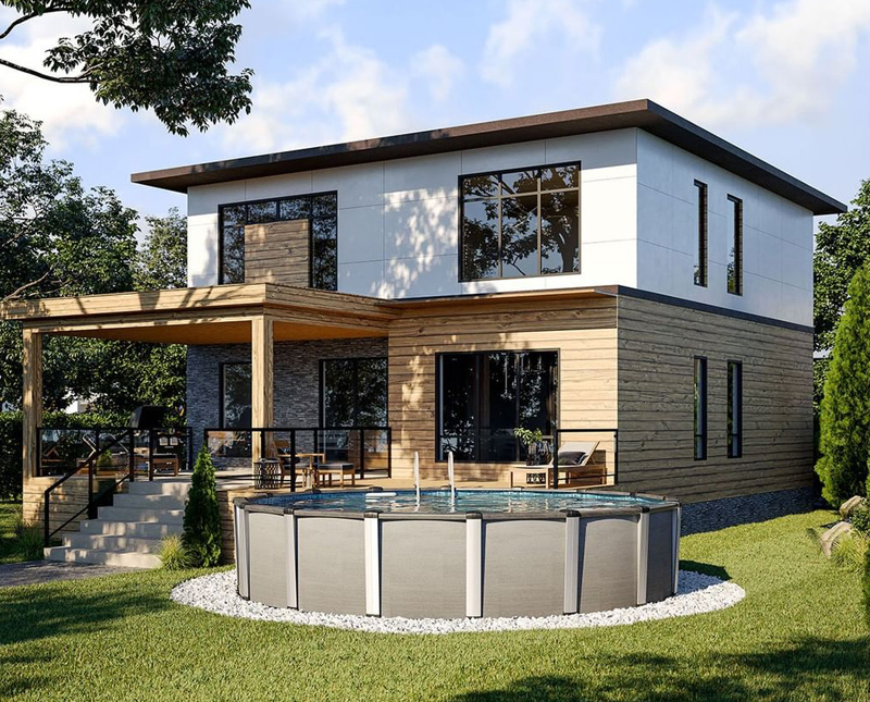 De façon générale, les piscines hors terre sont souvent installées dans le fond de la cour, ce qui implique la construction d'un second patio, si on compte celui généralement adossé à la façade arrière de la maison. En rapprochant la piscine près de votre demeure, vous n'aurez qu'à bâtir un seul patio et la rampe installée tout autour fera office de clôture de sécurité. Un verrou devra toutefois être ajouté à la portion adjacente à la piscine, question d'éviter tout incident.