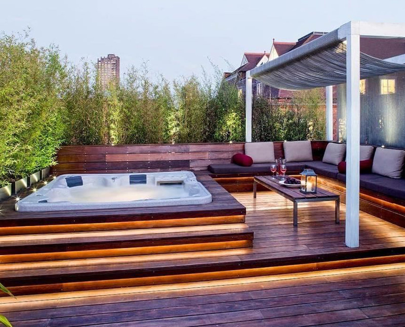 Un spa, c'est fabuleux pour se détendre. Mais, il faut se rendre à l'évidence, c'est loin d'être la plus belle chose à exposer dans une cour...à moins de trouver un moyen de l'intégrer harmonieusement à son patio!