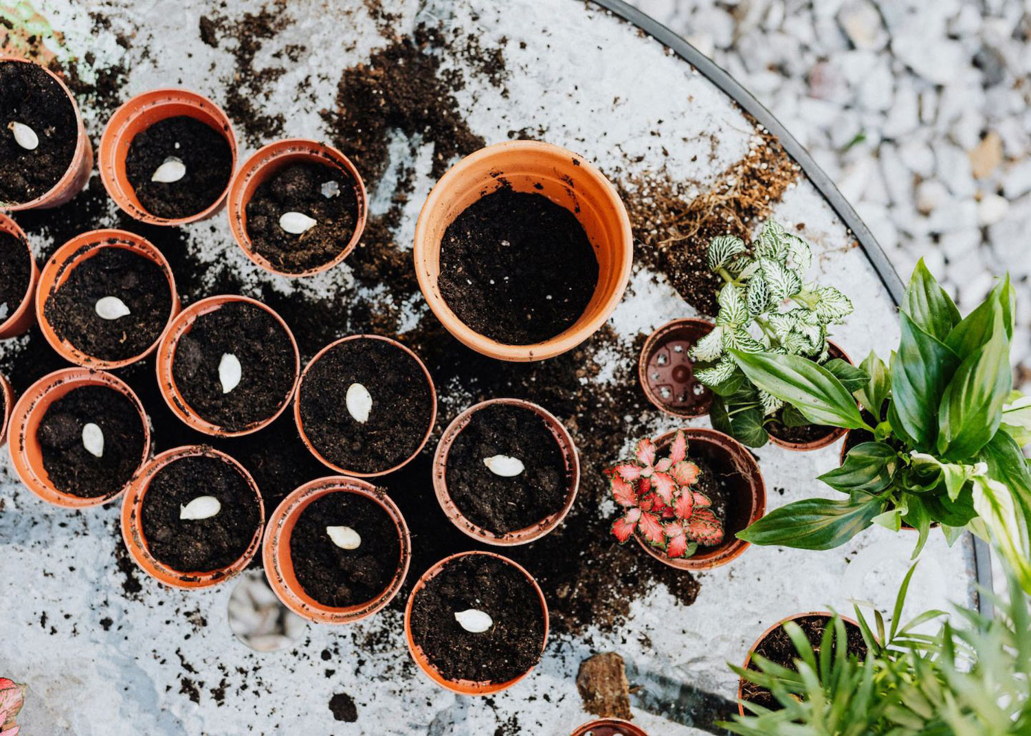 Répartissez uniformément les semences à la surface du terreau.