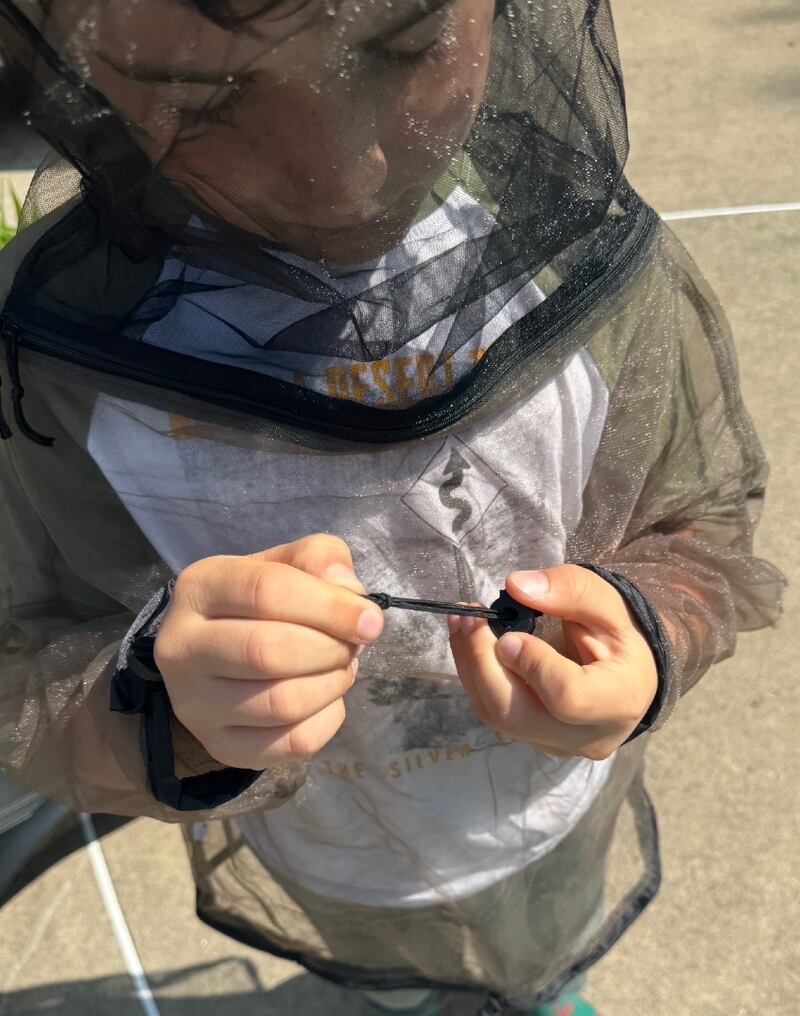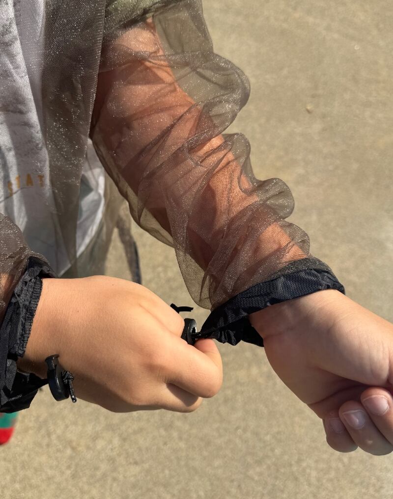 Il possède aussi des cordons de serrage réglables aux poignets et à la taille qui assurent un ajustement optimal. On a vraiment une barrière efficace contre les moustiques, moucherons et autres insectes minuscules, même lors d’activités prolongées en plein air.