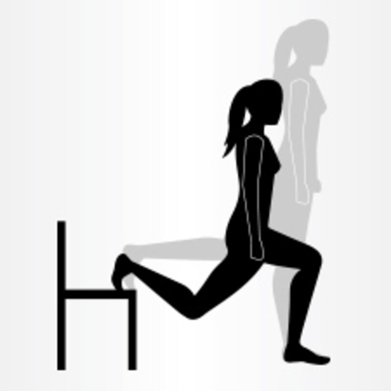 1. Debout, un haltère dans chaque main (ou pas), un pied en appui sur une chaise et l'autre qui vous stabilise.