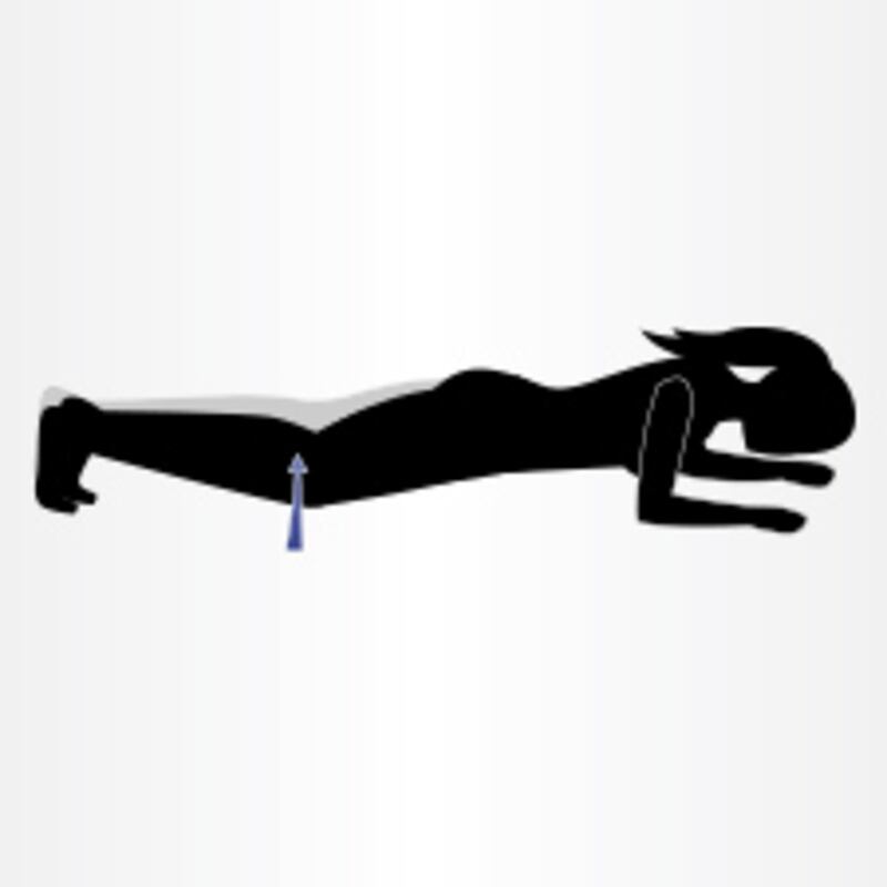 1. Couchée sur le ventre, vos 2 bras en dessous de votre poitrine.