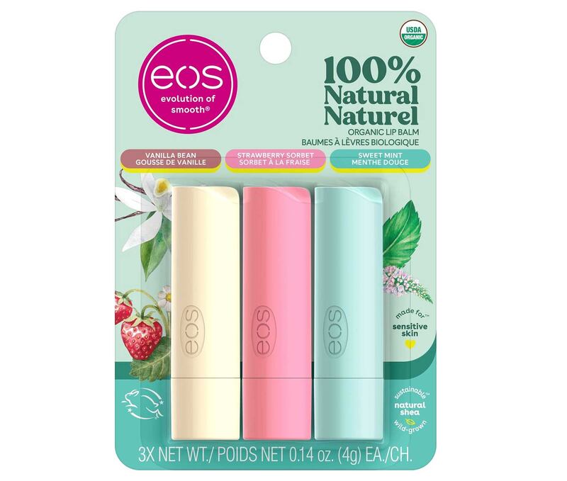 Lot de 3 baumes à lèvres naturels EOS, Amazon - 9,97$