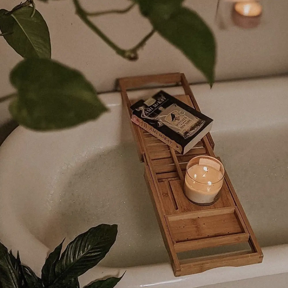 On ne le dira jamais assez, il n'y a rien comme un bon bain chaud pour relaxer. Vous pourrez mettre vos bougies parfumées, votre tisane ou un livre sur ce plateau en bois pendant que vous vous détendez dans l'eau chaude.