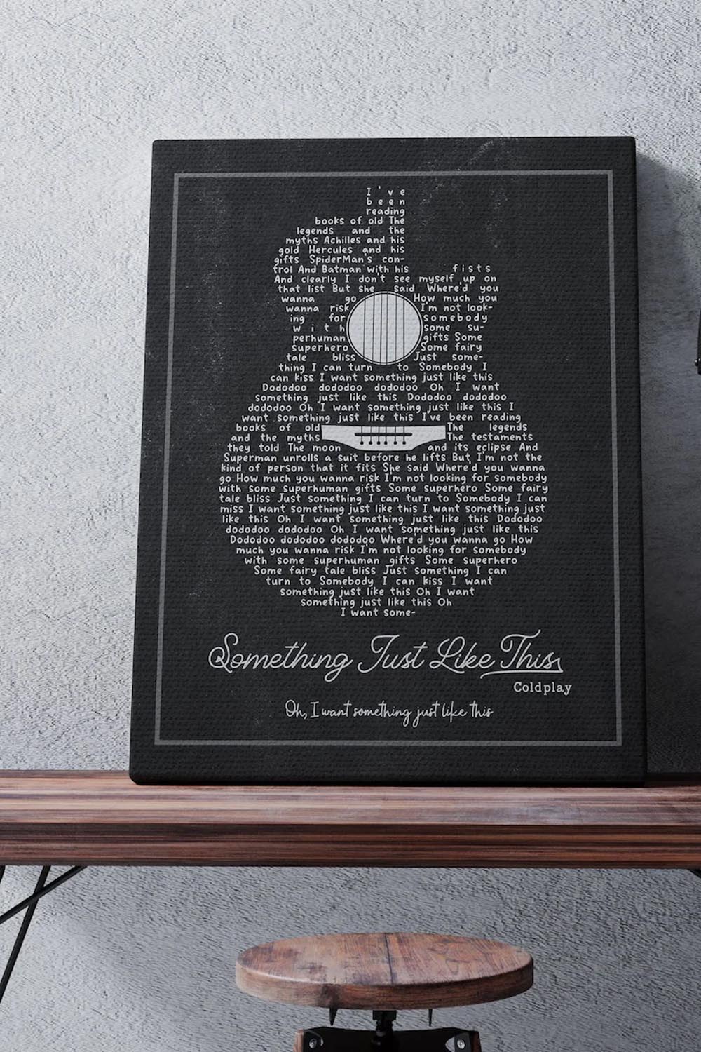 Voilà le cadeau idéal pour l’homme mélomane! Cette affiche met en vedette les paroles de sa chanson préférée (ou la chanson thème de votre mariage, pourquoi pas!) sur un piano ou une guitare.