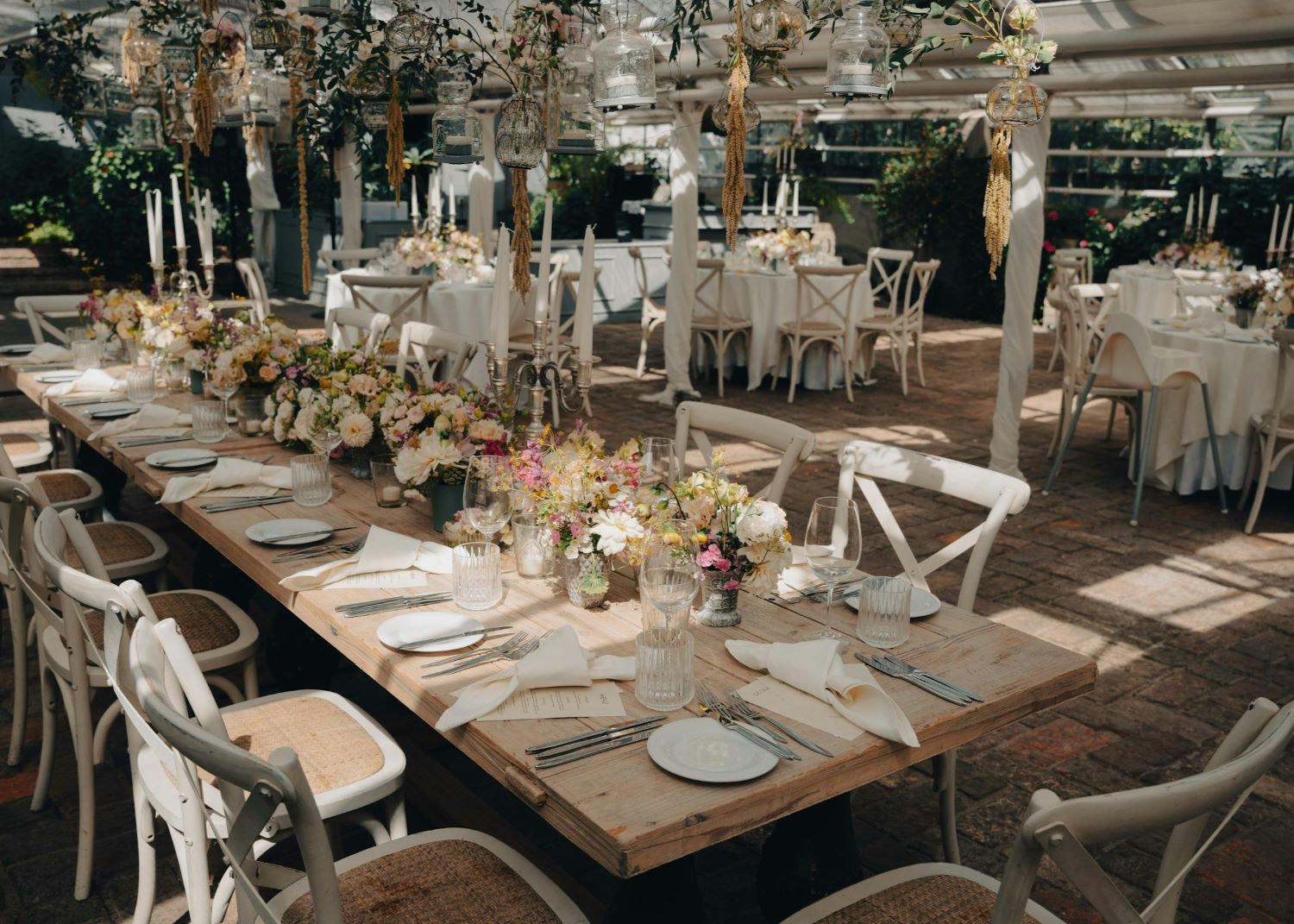 Cette tendance déco veut que l'endroit de la cérémonie ou la salle de réception soit décorée comme si les invité.e.s étaient plongé.e.s au milieu d'un magnifique jardin luxuriant. L'effet est tout simplement magnifique et ne manquera certainement pas d'en mettre plein la vue aux invité.e.s!