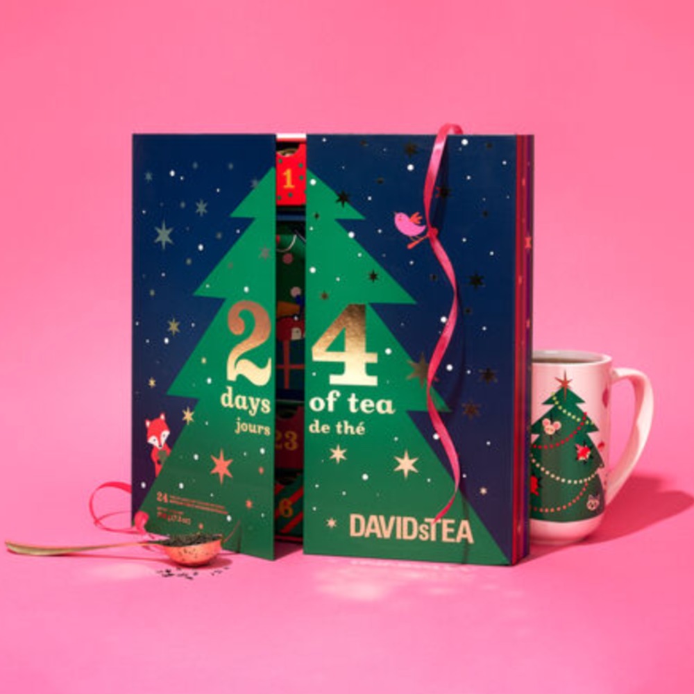 Vous trouverez un mélange de tisanes saisonnières et les préférés des amateurs dans ce calendrier de l'Avent DAVIDsTEA. Rempli exclusivement d'infusions sans caféine, il vous aidera à traverser le chaos des fêtes et à trouver des moments de zen.