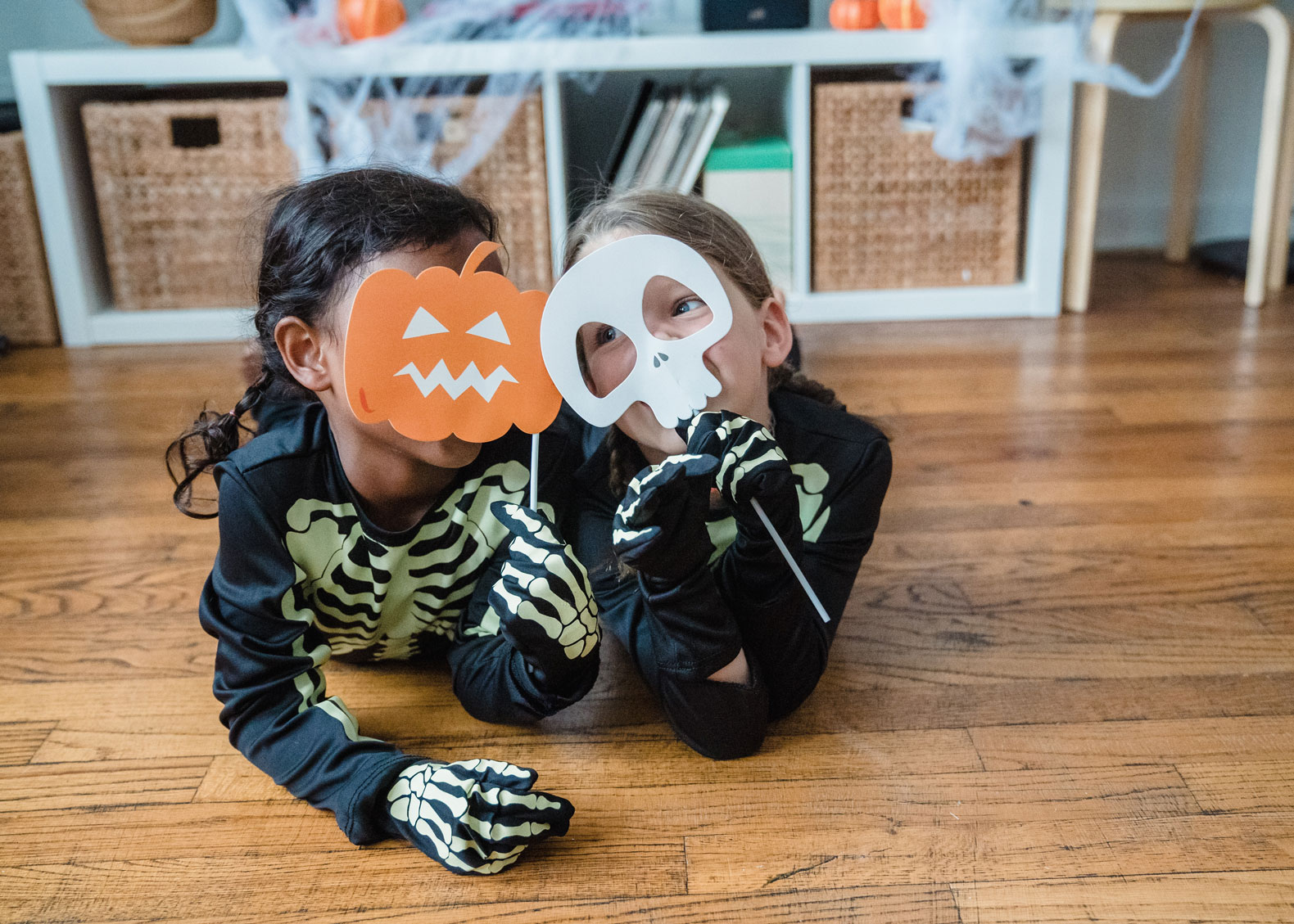 On trouve des araignées en plastique dans un magasin à 1$, ou on les fabrique soi-même, et on les cache dans la maison. Les enfants doivent partir à leur recherche avec une lampe de poche. Cris assurés! Et en passant, oui, le Dollarama devient le royaume pour tout trouver sans se ruiner, surtout si on les récupère pour l’an prochain. Le 1er novembre au matin, on met tout dans une grande boîte et on la range jusqu’à la prochaine Halloween.