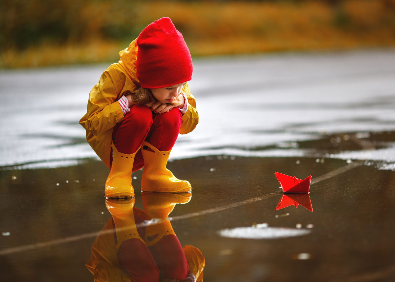 9. Organiser un concours de bateaux en papier dans les flaques d'eau;