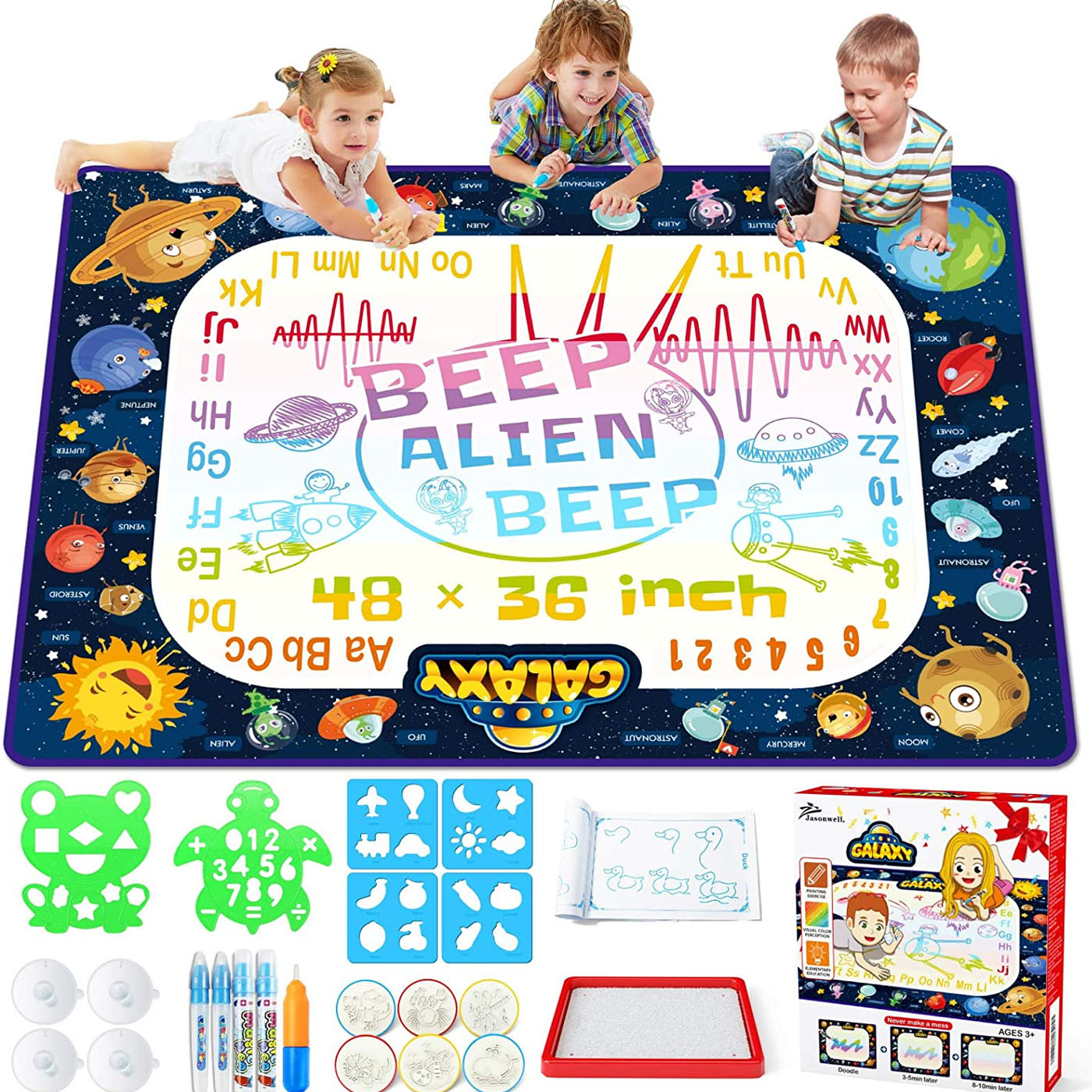 C’est sous le thème de la galaxie que se déroulera désormais les séances de dessin des enfants! Ce tapis de gribouillage réutilisable utilise des stylos magiques à l’eau. Les gribouillis disparaissent comme par magie après 3 à 10 minutes.