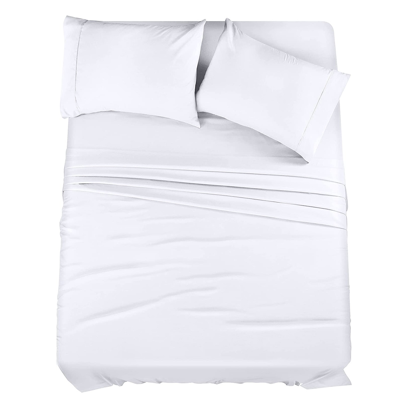 Une bonne nuit de sommeil commence par des draps ultra doux! Grâce à leur tissu en microfibre brossée, ceux-ci sont d’un confort sans pareil. L’ensemble comprend un drap plat, un drap contour et deux taies d’oreiller.