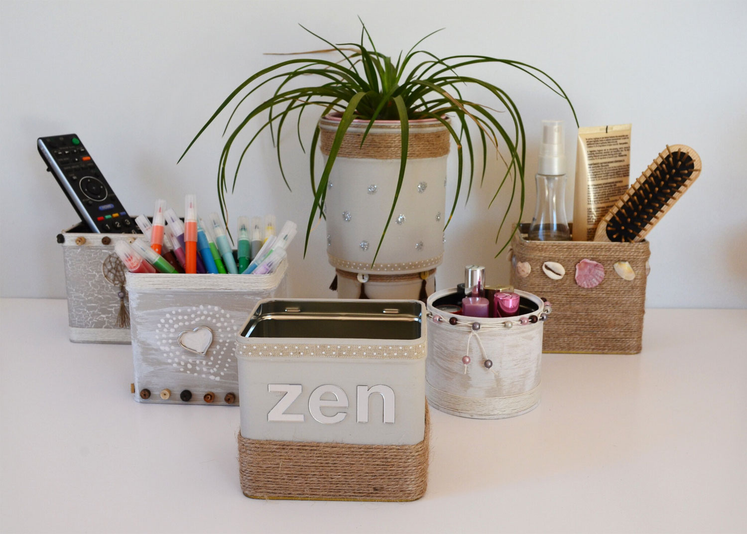 Donnez une seconde vocation aux boîtes de conserve vides dans votre recyclage: pot à crayons, cache-pot pour les plantes, contenant pour les brosses à cheveux, etc. Avec de la peinture, du ruban adhésif, de la colle, des cordes et quelques coquillages ou perles au choix, vos enfants créeront de jolis contenants… qui les aideront peut-être à s’organiser dans leur chambre!