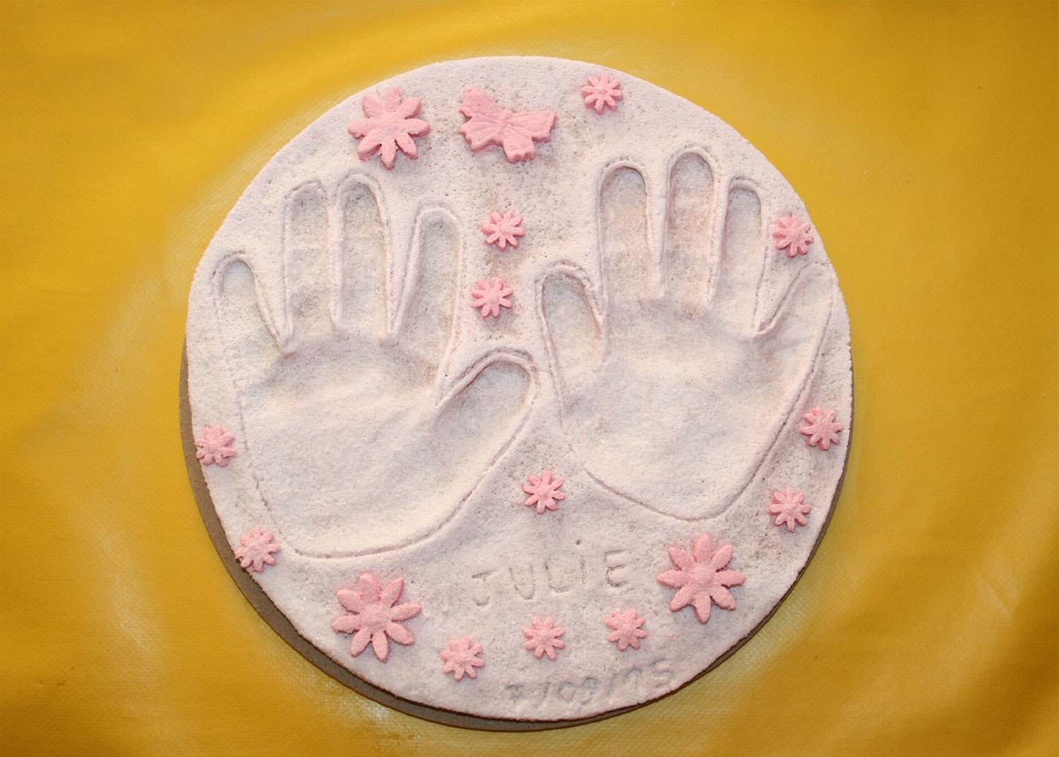 Une fois les mains marquées dans la pâte, placez vos créations au four à 210 °F pendant 2 à 3 heures. La durée de cuisson varie en fonction de la grosseur et l'épaisseur des pièces.
