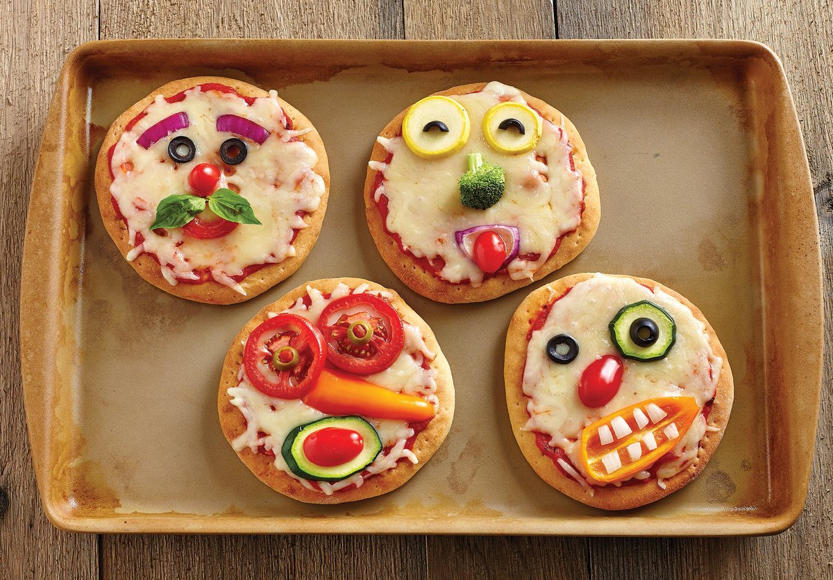 Rien de plus simple que de transformer une pizza en bonhomme! En fonction des légumes préférés de vos enfants, ils pourront créer le visage qu’ils souhaitent.