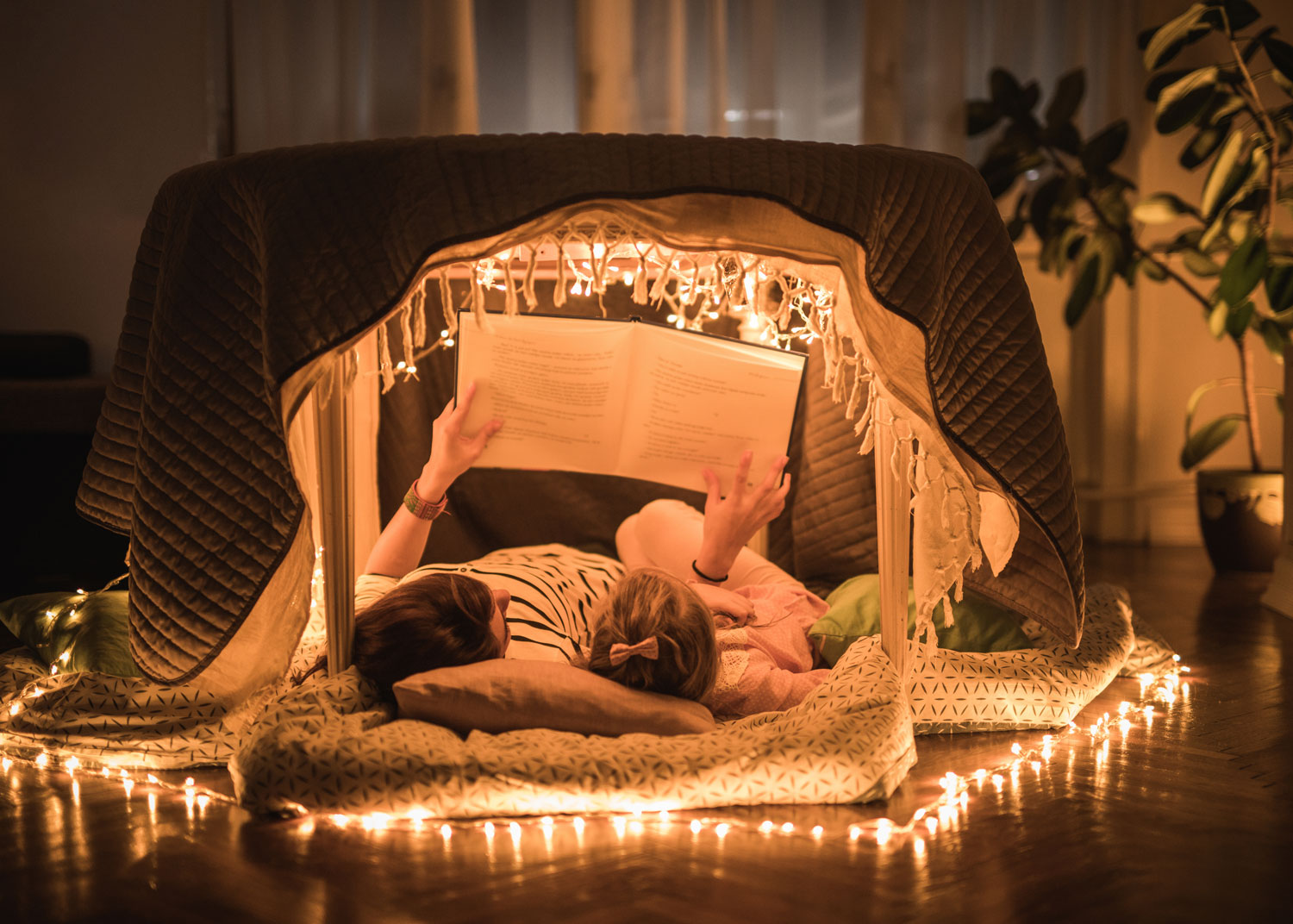 Montez une tente au sous-sol ou faites-en une avec des draps. Sortez les sacs de couchage et les lampes de poche. Profitez-en pour souper et même déjeuner assis parterre sur une couverture. Une activité toute simple, qui ne coute rien et qui ne nécessite aucune planification... mais qui réussit à briser la monotonie du quotidien!