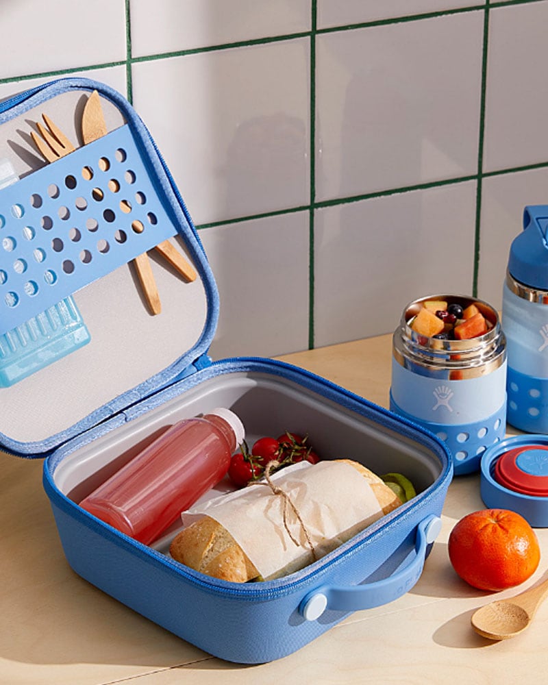 Une poignée, une courroie, une pochette sur le côté, de robustes fermetures éclair et une doublure isolante : cette boîte à lunch conviendra à tout le monde dans la famille.
