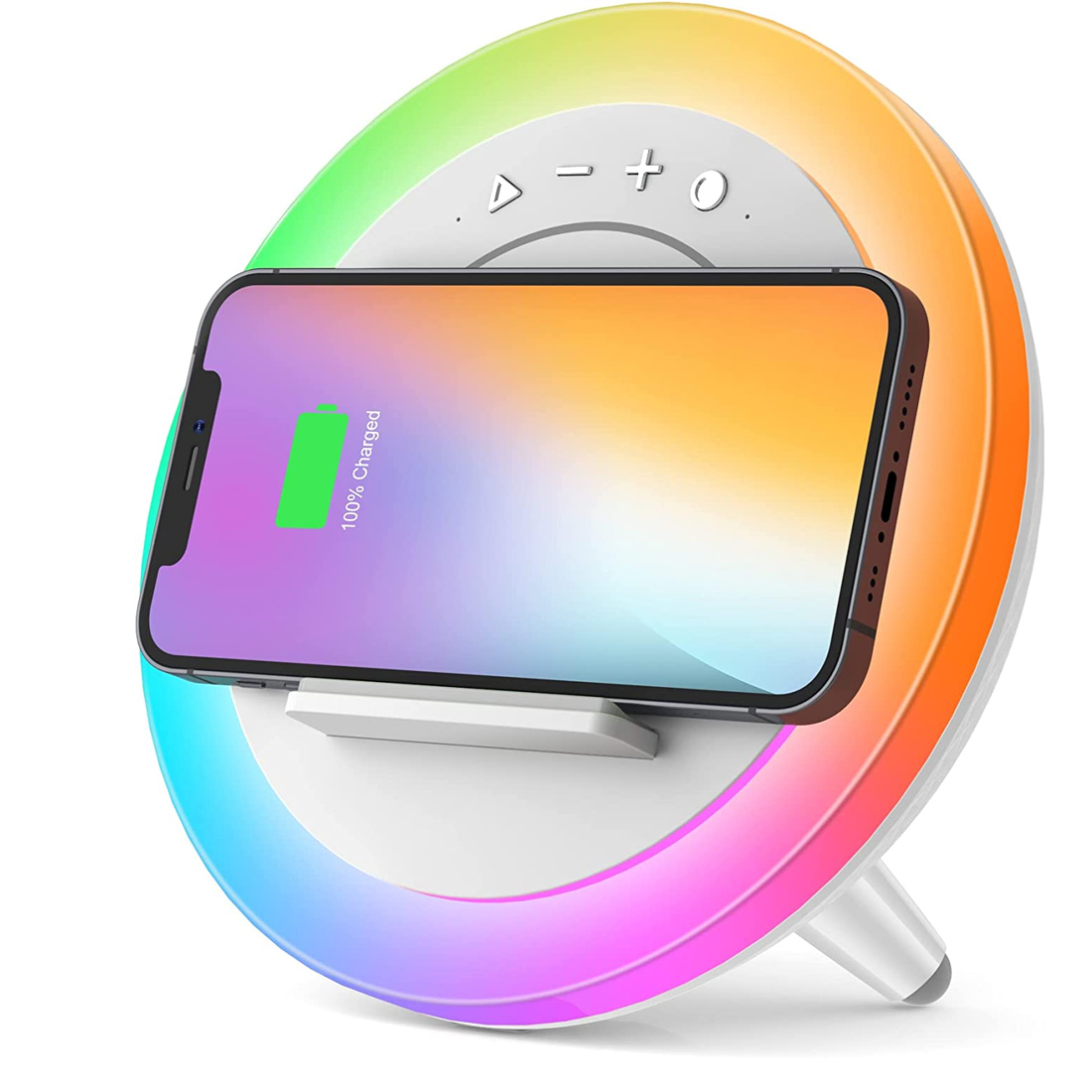 Ce gadget coloré est à la fois haut-parleur Bluetooth, veilleuse, station de charge sans fil et support de téléphone. Votre ado pourra ajuster la lumière à sa guise, écouter sa musique préférée pendant ses devoirs ou encore faire un Facetime avec ses amis.