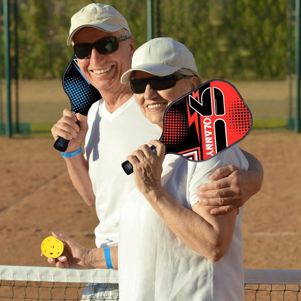 Le Pickleball est un sport qui a conquis toutes les générations! Si votre père ne s'y est toujours pas initié, c'est l'occasion rêvée. Offrez-lui cet ensemble de Pickleball, comprenant tout ce dont il a besoin pour s'exercer, soit quatre raquettes de qualité supérieure, six balles et un sac de transport.