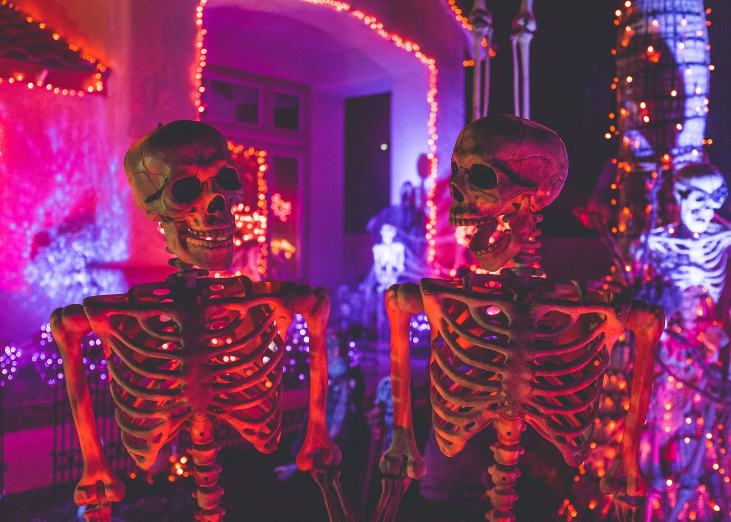 L'Halloween n'est pas seulement une fête pour les enfants, les adultes aussi ont le droit de profiter de cette soirée. Vous vous rassemblez avec quelques ami.e.s pour donner des bonbons à la porte? Pourquoi ne pas plonger à fond dans l’atmosphère de l’Halloween en vous déguisant, vous aussi? Une amie se transforme en mariée cadavérique, un autre devient un vampire assoiffé et votre tendre moitié est un mort vivant, couché devant la maison, le temps de quelques heures. Cri et plaisir garantis!