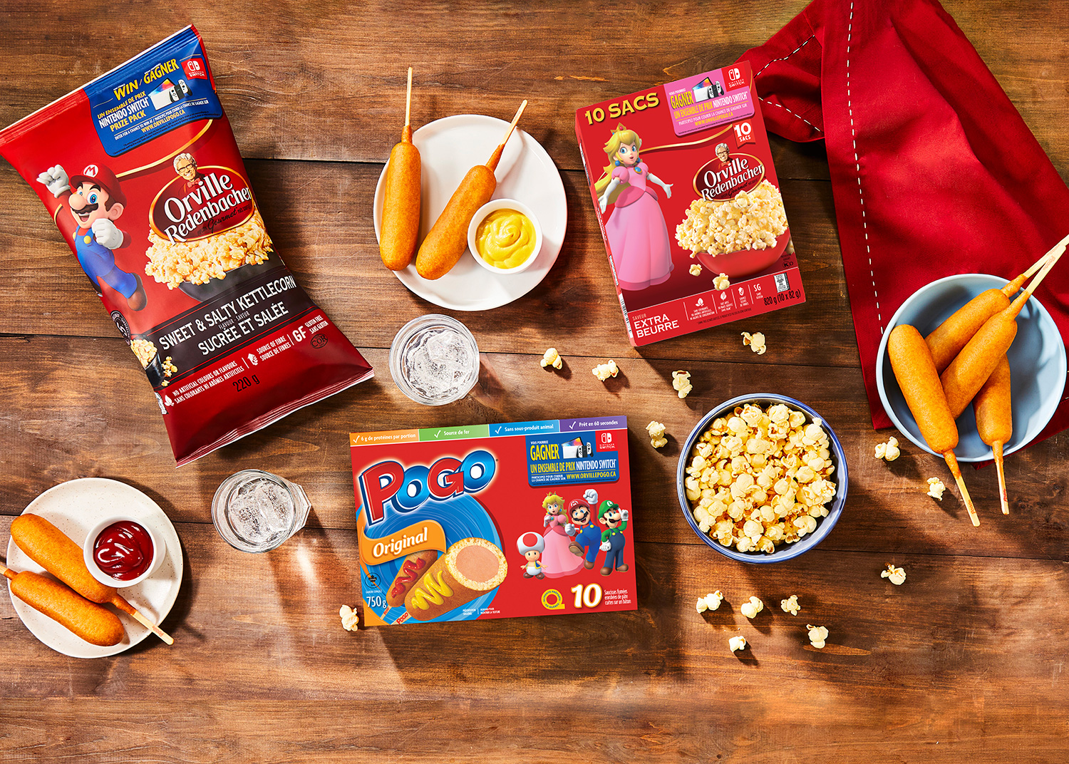 Aucune soirée de jeux n’est complète sans quelques grignotines ! Préparez des collations faciles à manger entre les tours de tout un chacun. Orville Redenbacher® et POGO® offrent les collations pratiques, idéales pour accompagner les parties de Nintendo Switch, ce qui rend la soirée en famille plus agréable et mémorable. Le temps de jeux en famille est un moment spécial pour partager des collations faciles et pratiques avec une préparation minimale. Le goût du maïs soufflé préféré du Canada, et ses ingrédients de qualités sans couleurs ou saveurs artificielles, font du maïs soufflé Orville Redenbacher® un favori de la famille, mettant des sourires sur toutes les lèvres. POGO® est aussi une collation amusante qui se mange sur un bâton, un choix approuvé par tous lors d’une partie. Préparé au Québec, POGO® requiert un temps de cuisson minimal et se déguste en un rien de temps entre deux jeux. Disposez ces incontournables sur votre table de salon et vous êtes fins prêts à jouer.
