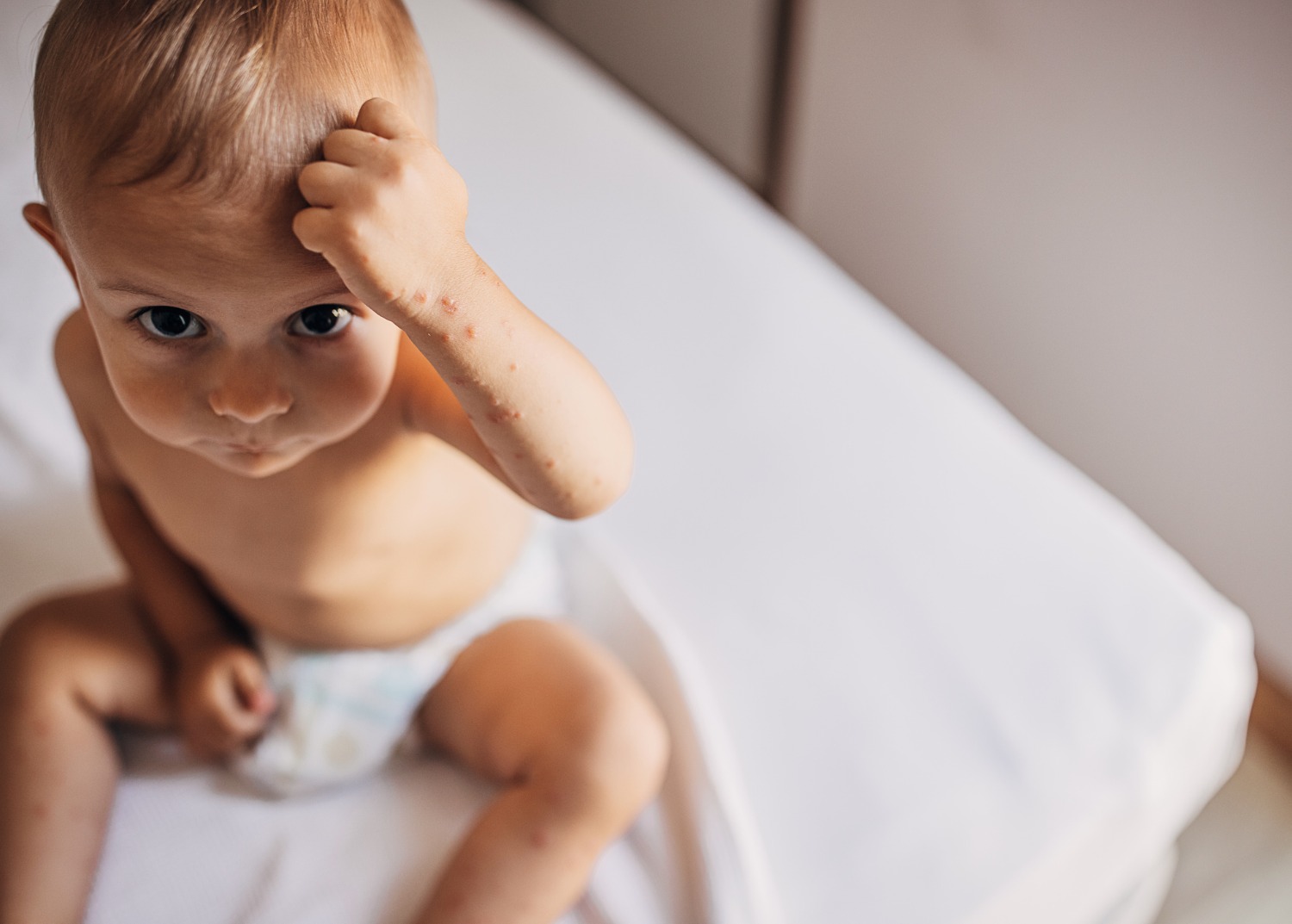 - Petites cloques sur les mains, les doigts, la plante des pieds, les fesses