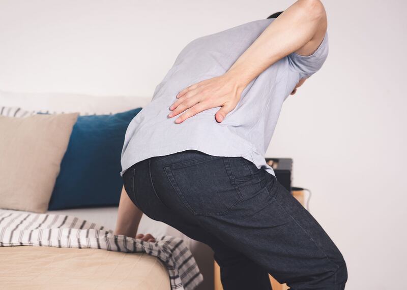 - Une douleur très intense qui irradie depuis le bas du dos jusque dans le ventre et l'aine: celle-ci peut durer de quelques minutes à quelques heures, apparaitre et disparaitre selon les moments;