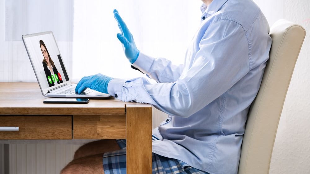 Ce collègue veut conserver une image professionnelle, alors il s’assure de porter une chemise propre et une cravate tout en restant en sous-vêtements.