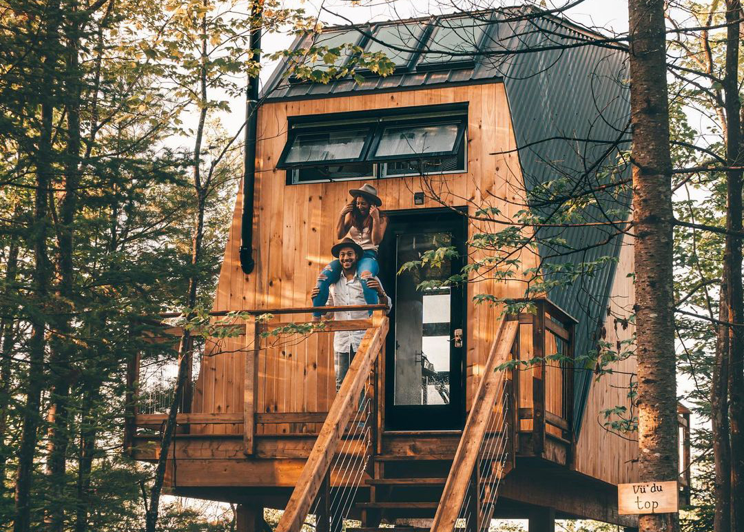 Pour ceux qui sont plus «glam» que «ping», le site de glamping Huttopia Sutton propose des hébergements insolites tout confort.