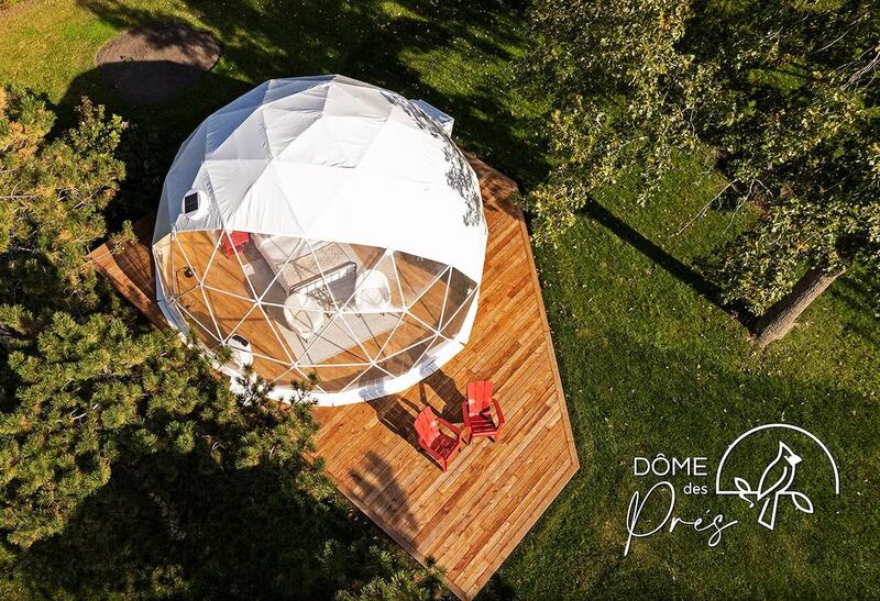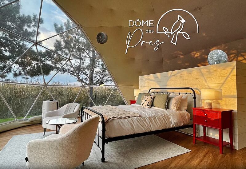 Située à Saint-Basile-le-Grand en Montérégie, la Maison des Prés est dotée de plusieurs chambres et salles à manger, mais c'est le fameux dôme situé sur la propriété qui retient le plus notre attention. Celui-ci est parfait pour un pique-nique intime sous les étoiles!