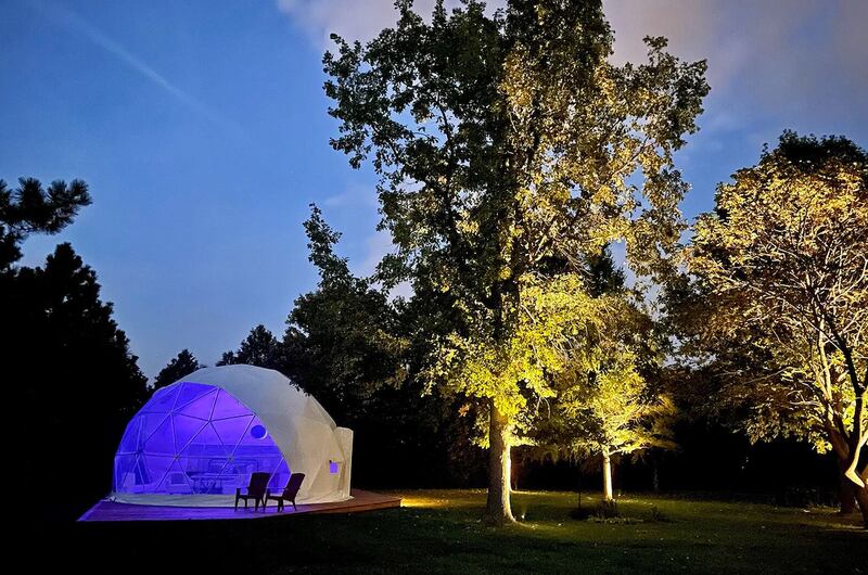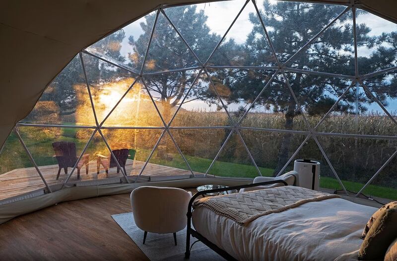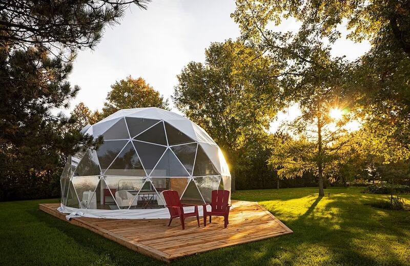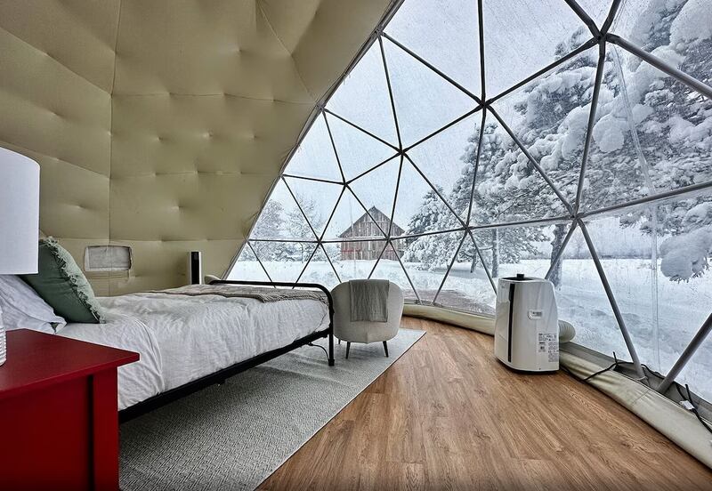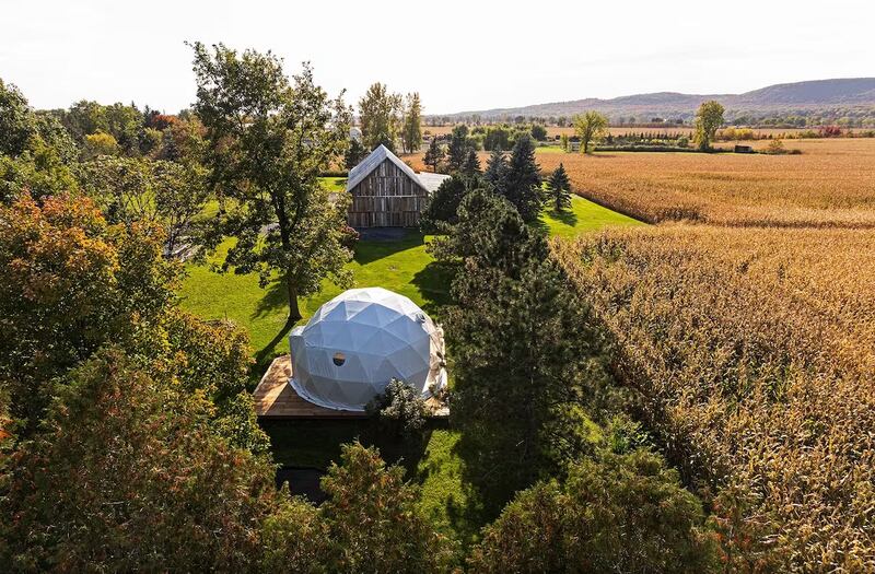Une des propriétés qui a retenu notre attention pour une escapade d'automne réussie est cette maison à louer avec accès à ce dôme géodésique.
