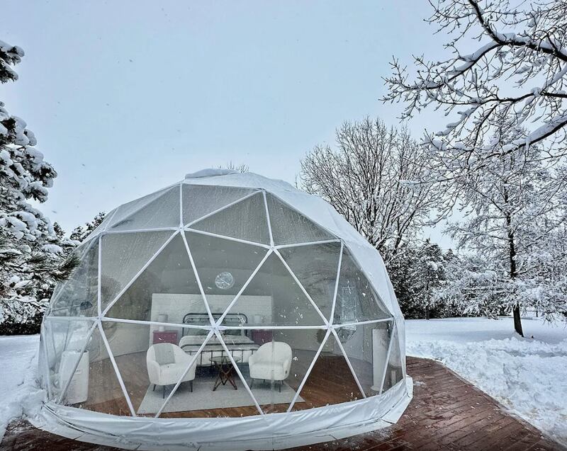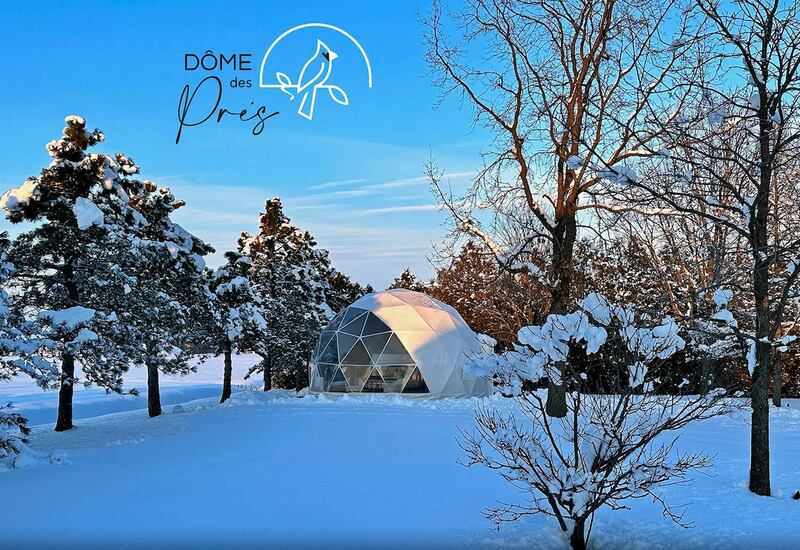 Certes, l'environnement est très joli pendant l'automne, mais le spectacle hivernal est aussi époustouflant! Imaginez vous réveiller dans ce douillet dôme entouré de sapins enneigés. Un rêve!
