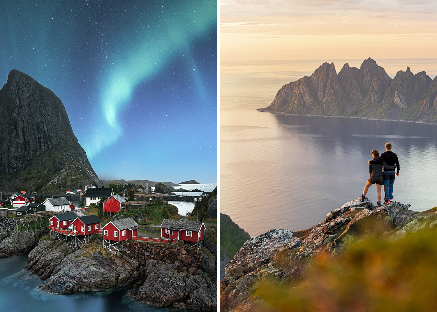 Rendez-vous dans une véritable carte postale norvégienne dans les îles de Lofoten. Les petits villages de pêcheurs qui s’y trouvent feront les plus beaux clichés, tout particulièrement celui de Henningsvær, appelé le « Venise » de Lofoten. Avec ses jolies ruelles étroites, ses maisons en bois aux couleurs vives, ses hébergements très chouettes, il faut définitivement planifier s’y arrêter une journée ou deux pour s’en prendre plein les yeux. Ne manquez pas la randonnée vers son plus haut sommet pour la plus belle vue!
