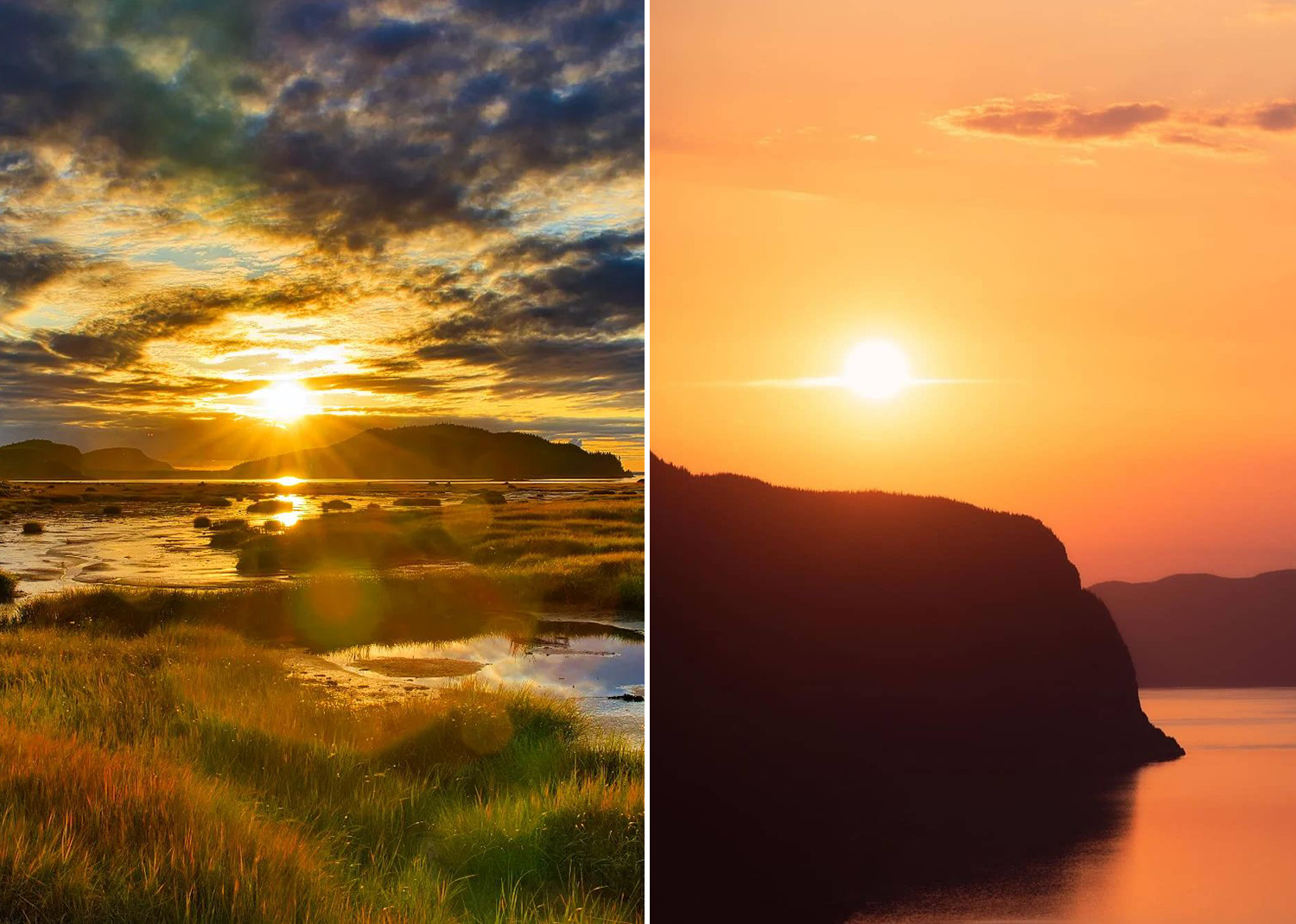 Ce moment où le soleil disparaît à l’horizon après une magnifique journée, lorsque le ciel est dégagé, c'est magique! Que ce soit au bord de l’eau, en montagne, sur la route, en campagne ou en ville, le Québec offre une multitude d’endroits où admirer de magnifiques couchers de soleil.
