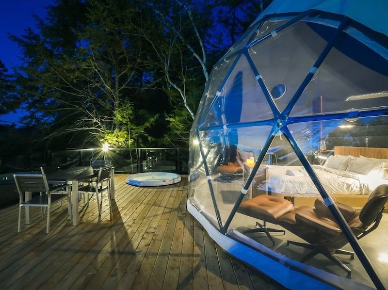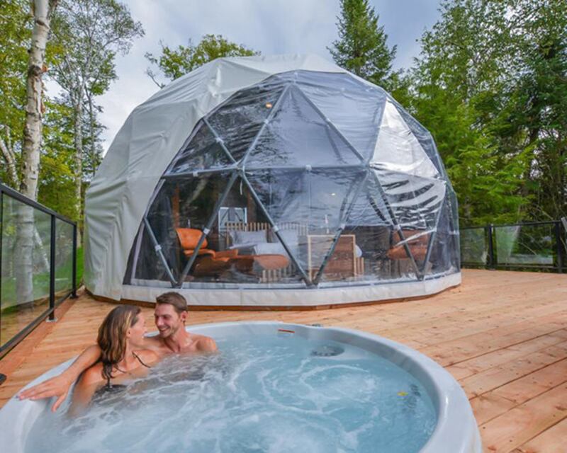 L’une d’entre elles se trouve au Bel Air Tremblant, un lieu unique qui combine des résidences et des hébergements de vacances, tels que des dômes tout équipés avec sauna et jacuzzi privés.