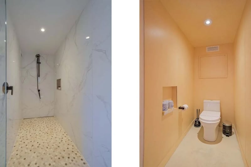 À l'extérieur, on retrouve sur la grande terrasse un sauna et un jacuzzi privés, ainsi qu'une table et des chaises longues pour s'étendre et regarder les étoiles.
