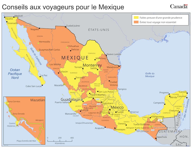 Le gouvernement du Canada demande également d’éviter tous les voyages non essentiels vers le Mexique.